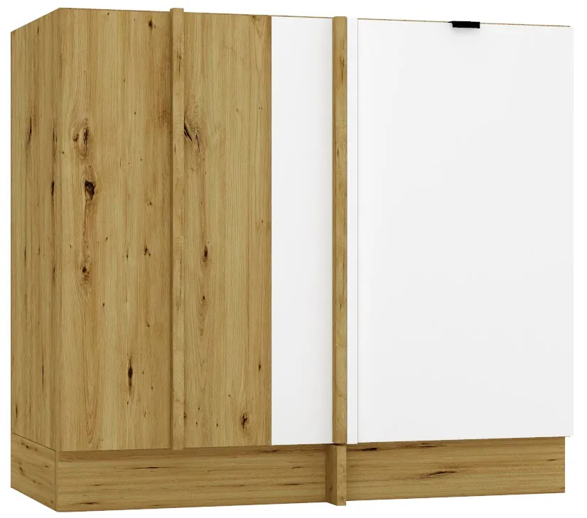 Dolna szafka kuchenna narożna biały + dąb artisan - Elandro 14X