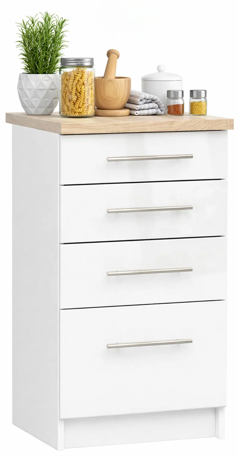 • Cztery pojemne szuflady: oferują mnóstwo miejsca na przechowywanie naczyń, sztućców i akcesoriów kuchennych, co pozwala na utrzymanie porządku i organizacji w kuchni.