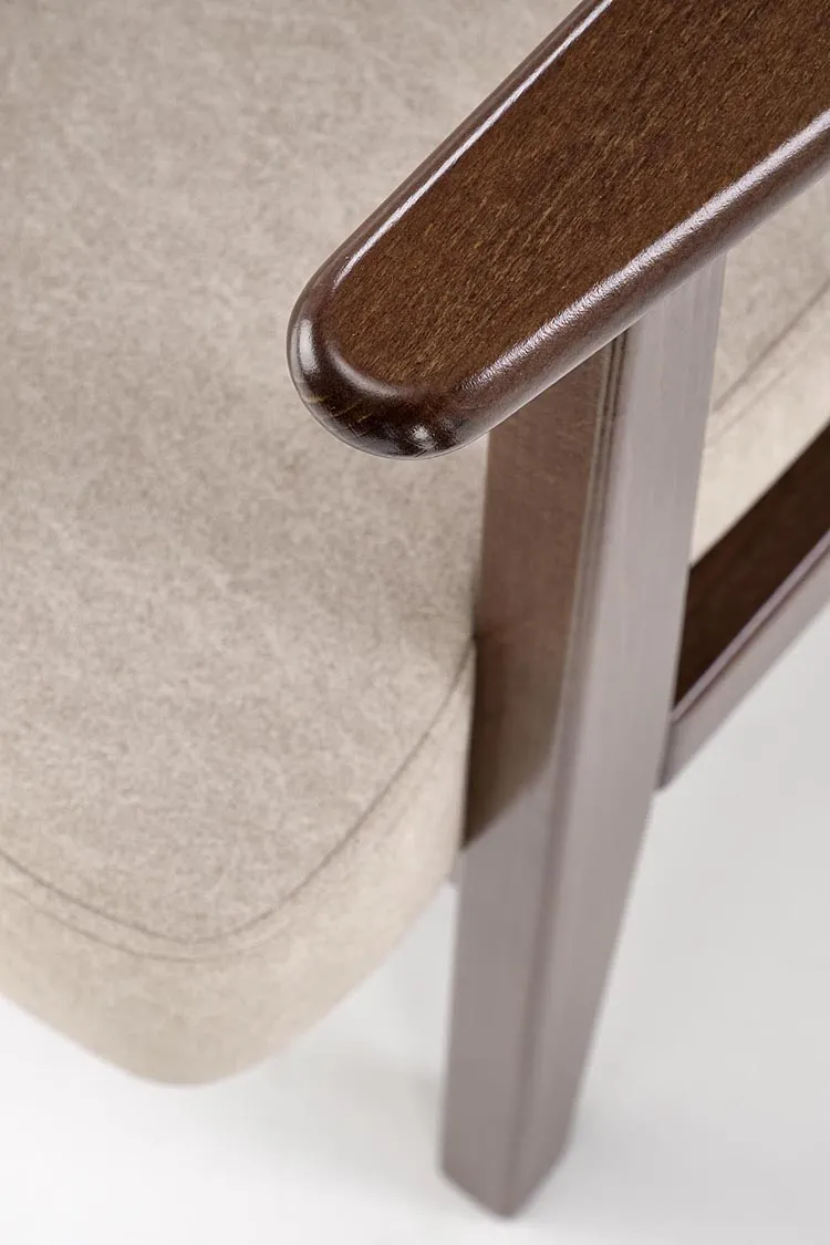 Drewniana beżowa tapicerowana sofa retro - Alexander 4X