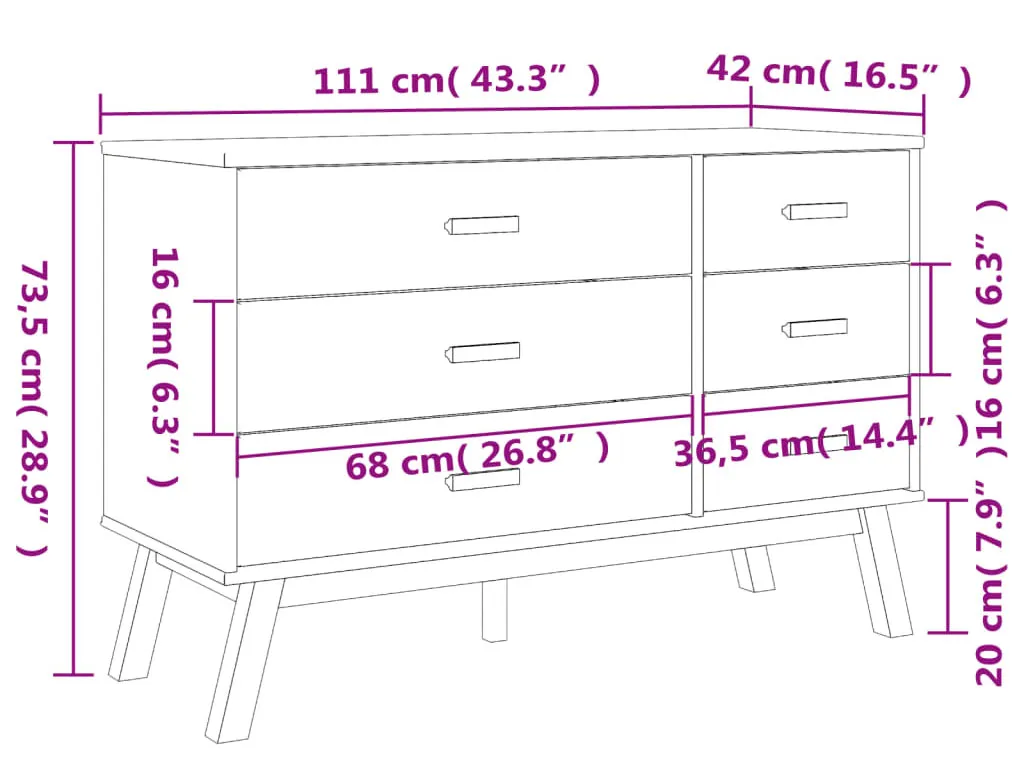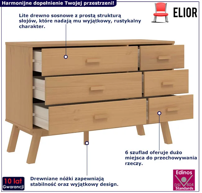 Dotyczy: Długa sosnowa komoda na nóżkach brązowy + szary - Krebri 4X