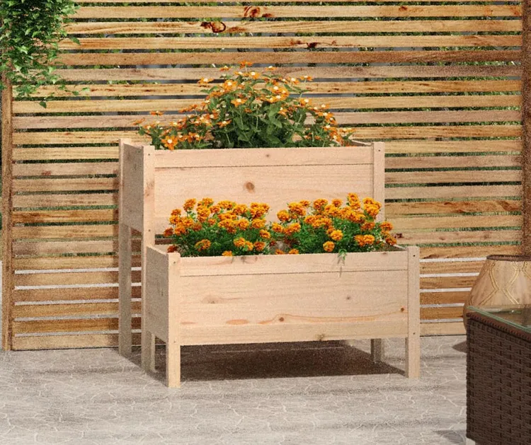 Drewniana dwupiętrowa donica ogrodowa w kolorze sosny - Finir