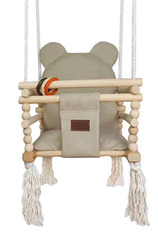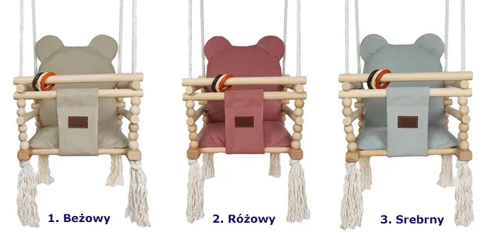 Dotyczy: Drewniana huśtawka z welurowym oparciem srebrna - Akli