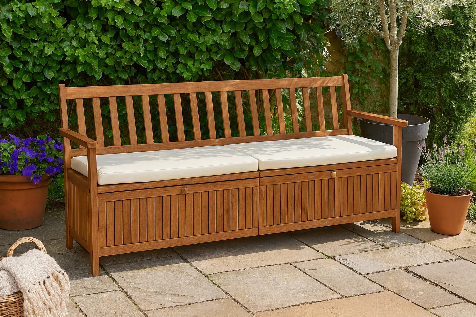 Dotyczy: Brązowa drewniana ławka ogrodowa - Kaja