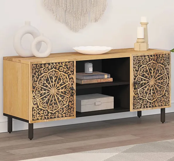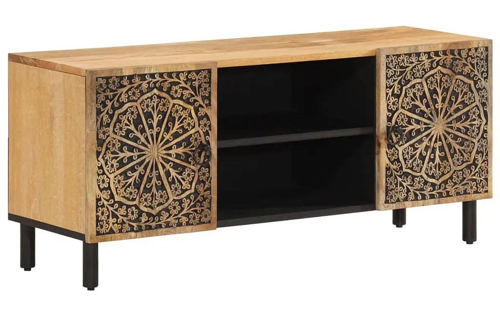 Szafka RTV Dikon 3X z kolekcji Ronirox marki Edinos Premium to mebel, który z powodzeniem stanie się sercem Twojego salonu. Wykonana z litego drewna mango, nie tylko przyciąga wzrok swoim unikalnym usłojeniem, ale także gwarantuje solidność i trwałość na lata. Drewno mango, jako mocne drewno tropikalne, zapewnia każdemu egzemplarzowi niepowtarzalny charakter i wytrzymałość. Dikon 3X oferuje obficie miejsca do przechowywania, co czyni ją idealnym wyborem dla każdego, kto ceni porządek i estetykę. Szafka pod telewizor jest doskonale przemyślana, by pomieścić wszystkie Twoje akcesoria multimedialne, płyty DVD, czasopisma i inne przedmioty, utrzymując je w zasięgu ręki, lecz poza wzrokiem gości.