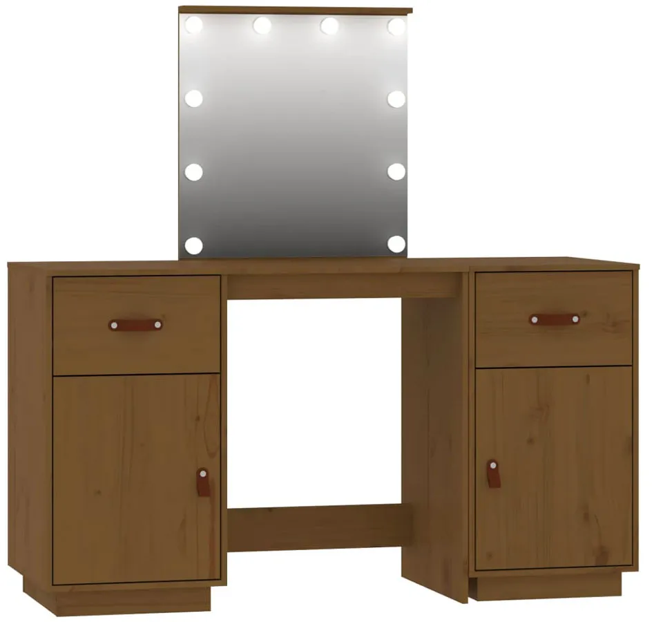 Drewniana toaletka z lustrem z lampkami miodowy brąz - Nilsa 4X