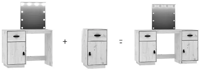 • Przestronne przechowywanie: toaletka oferuje szeroką szufladę, szafkę oraz kontenerek z dodatkową szufladą i szafką, zapewniając obfitość miejsca na wszystkie twoje potrzeby.