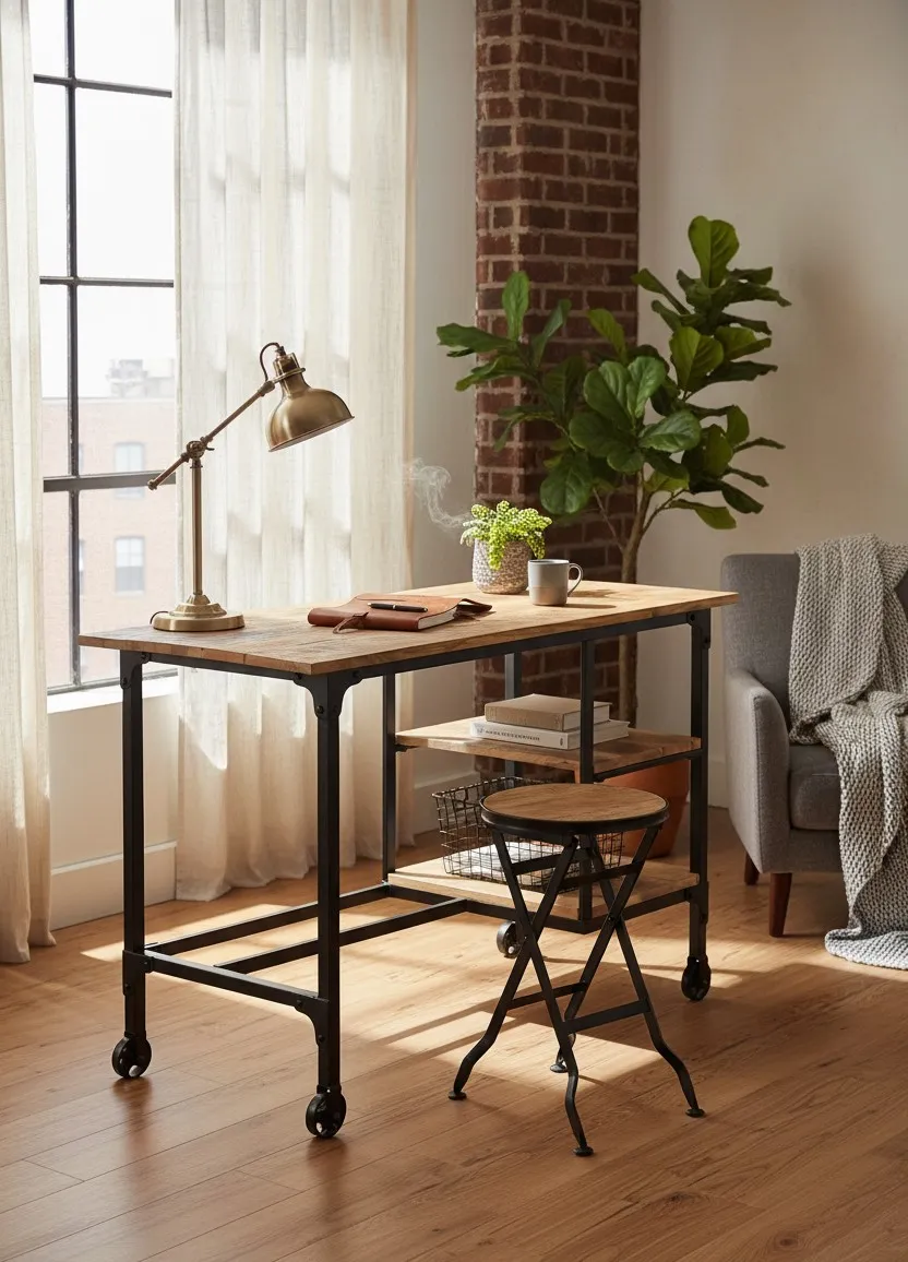 Przywołaj ducha retro do swojego domowego biura z unikatowym biurkiem Olvina marki Edinos Premium! Wyposażone w praktyczne kółka, jest definicją współczesnej mobilności ubranej w elegancki styl vintage. Składany taboret idealnie komponuje się z estetyką biurka, czyniąc go doskonałym wyborem dla osób ceniących funkcjonalność i niepowtarzalny design.