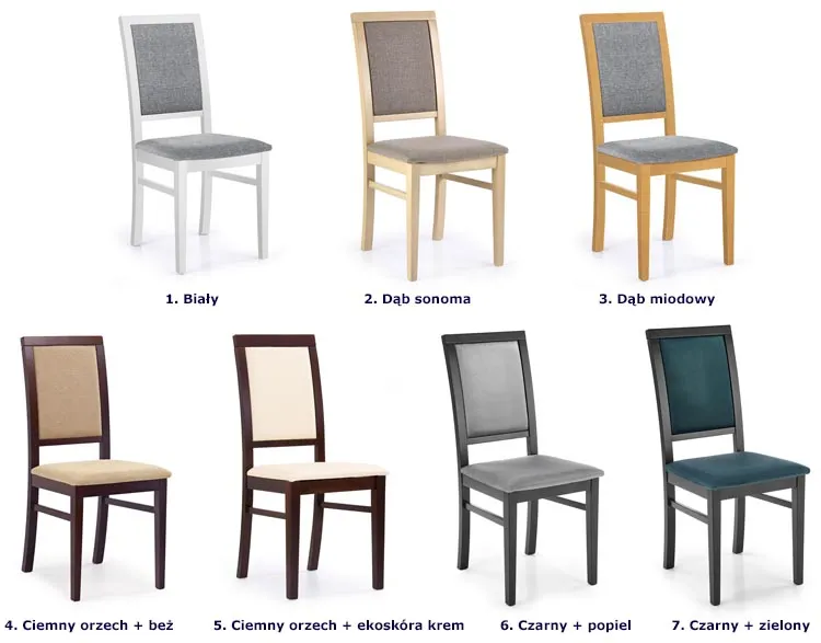 Dostępne wersje kolorystyczne drewnianego krzesła do kuchni Iledor