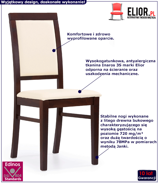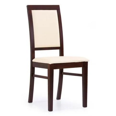Drewniane krzesło tapicerowane Iledor - Ciemny orzech + kremowa ekoskóra