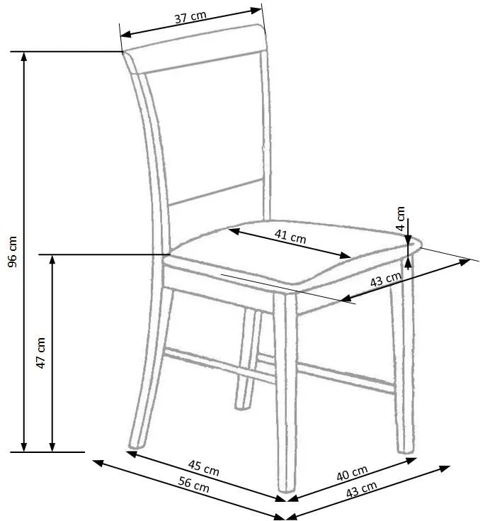 - Wymiary: szerokość całkowita - 43 cm, głębokość całkowita - 56 cm, wysokość całkowita: 96 cm, szerokość siedziska: 43 cm, głębokość siedziska: 41 cm, wysokość siedziska: 47 cm.