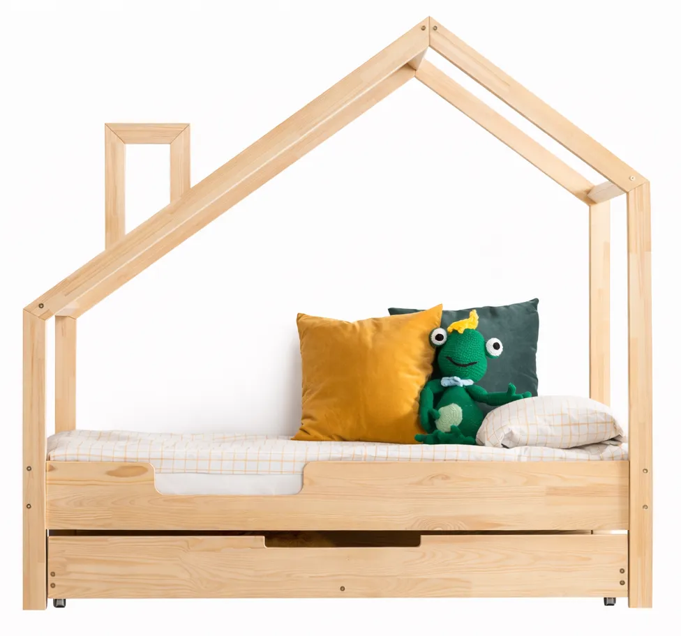 Drewniane łóżeczko dziecięce domek z szufladą Induro 9X