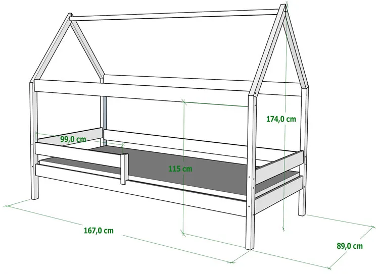 Infografika łóżka dziecięcego typu domek w kolorze naturalnym Cubis 4X