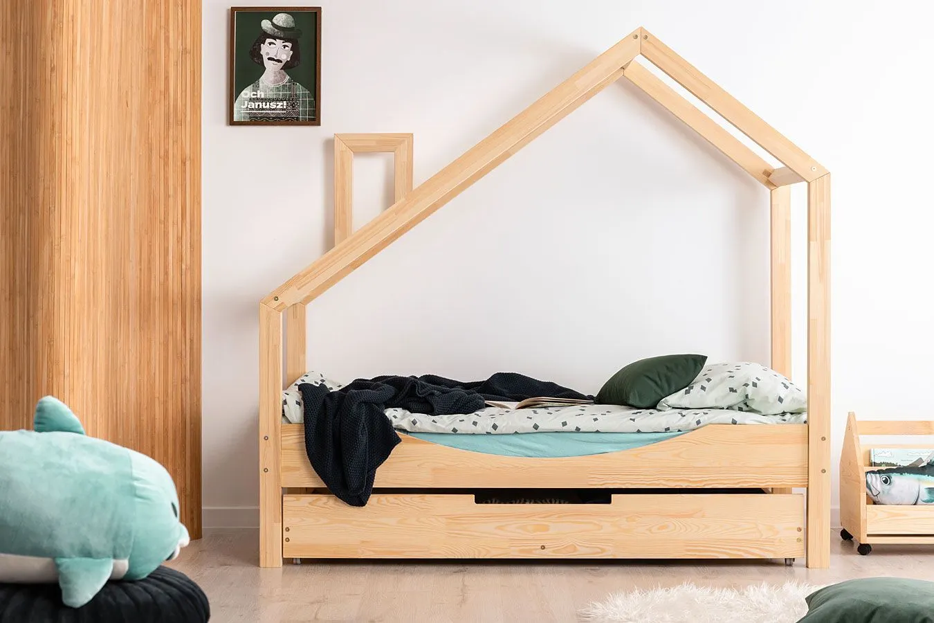 Drewniane łóżko dziecięce domek z szufladą Induro 11X