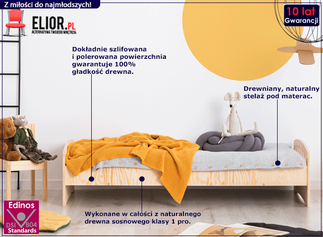 - Modna kolorystyka: Naturalna sosna. (Usługa dodatkowego malowania łóżka w kolorze: biały, czarny lub szary, dostępna jest w ofercie tutaj). Sprawdź także inne dziecięce łóżka drewniane w sklepie Edinos.pl. Stwórz swój praktyczny zestaw mebli.