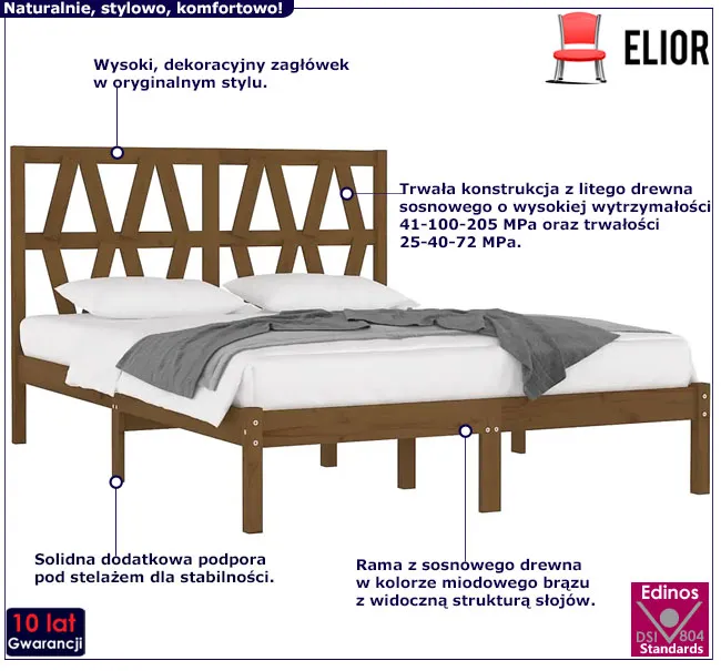 • Modna kolorystyka: miodowy brąz. Kliknij w link i sprawdź także inne łóżka drewniane 120x200 w sklepie Edinos.pl. Stwórz swój praktyczny zestaw mebli.