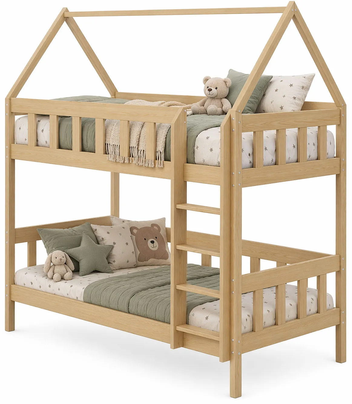 Łóżko Varcon 3X to mocna drewniana konstrukcja w kształcie prawdziwego domku. Dzieci kochają takie rozwiązania. Zachęć swoje maluchy do spania we własnym pokoju tym komfortowym i zaprojektowanym specjalnie dla nich meblem, który wytrzyma wszystkie dziecięce zabawy. W komplecie z łóżkiem otrzymasz dwa wygodne materace, tak by Twoje dzieci mogły od razu po złożeniu korzystać z nowego posłania. Mocna drewniana drabinka ułatwi wchodzenie na górę, a konstrukcja w kształcie dachu domku to świetne miejsce do zawieszenia kolorowych lampek czy dziecięcych zabawek. Bezpieczeństwo Twoich dzieci w trakcie spania gwarantuje też zestaw barierek, które zapobiegną spadnięciu maluchów na ziemię. Wybierz jakość, która da Ci zadowolenie z mebla i spokojny sen Twoich dzieci w jednym.