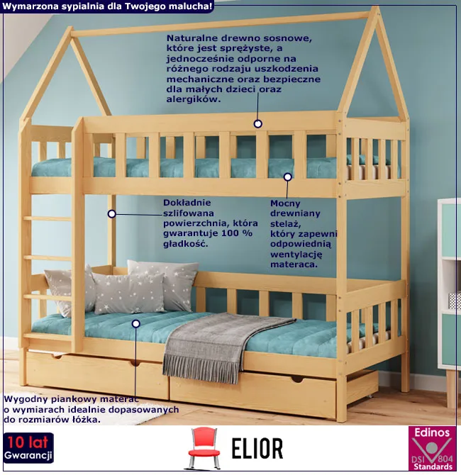 Dotyczy: Szare łóżko piętrowe domek z szufladami materacami dla dzieci - Varcon 4X 190x80 cm