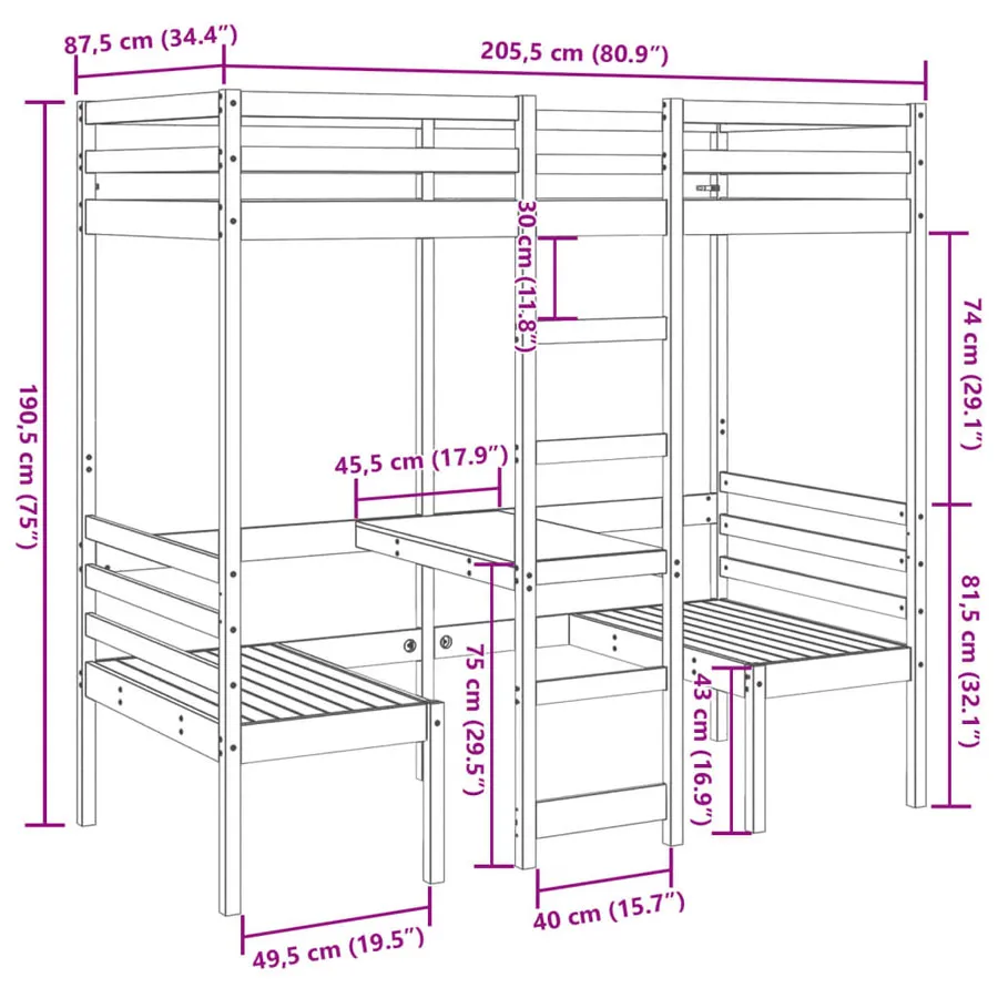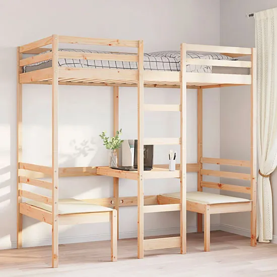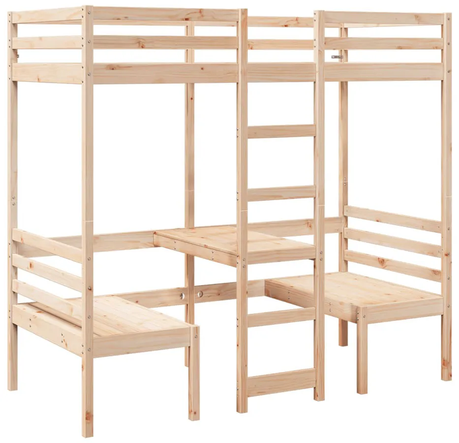 Drewniane łóżko piętrowe z biurkiem i siedziskami 80x200 - Kerbi 4X