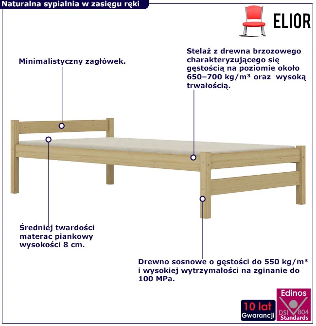 Sosnowe łóżko jednoosobowe z materacem Edur 4X