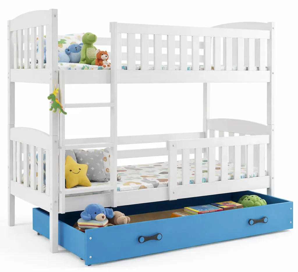 Dotyczy: Białe piętrowe wspólne łóżko dla rodzeństwa z szufladą 90x200 - Tello 3X