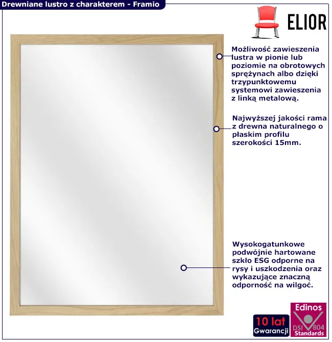 Dotyczy: Czarne lustro drewniane wiszące - Solma 15 rozmiarów