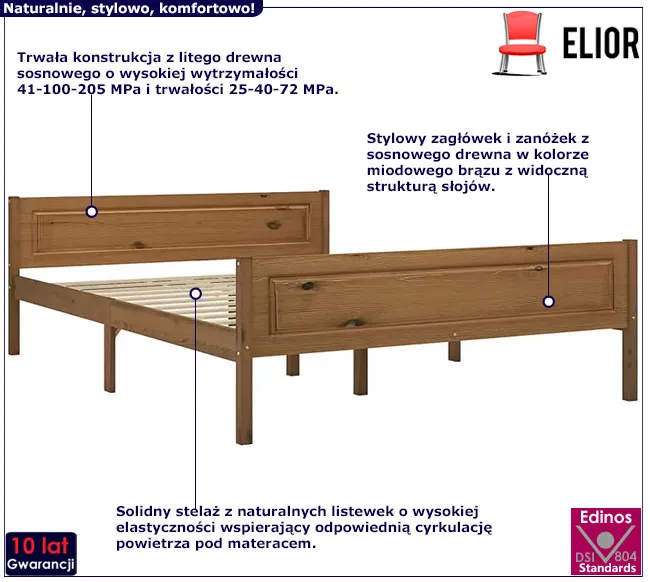 • Modna kolorystyka: miodowy brąz. Kliknij w link i sprawdź także inne łóżka drewniane w sklepie Edinos.pl. Stwórz swój praktyczny zestaw mebli.