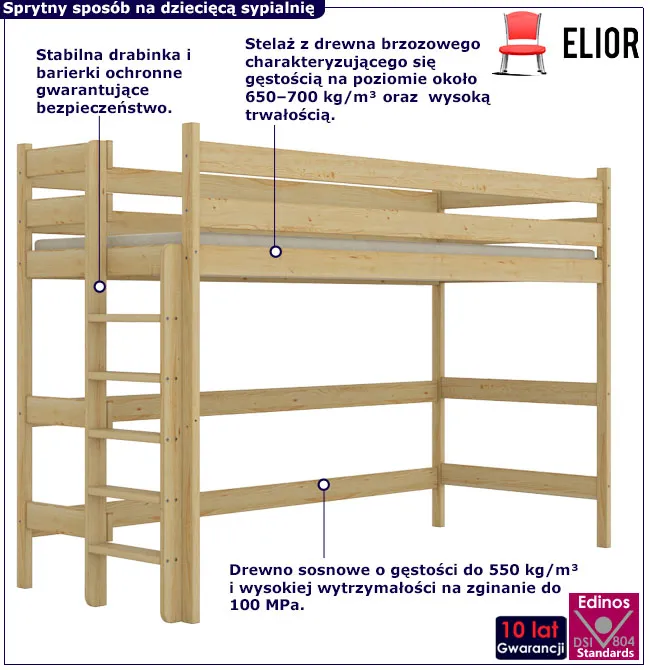 • Wykonane z drewna sosnowego, co gwarantuje bezpieczeństwo użytkowania.