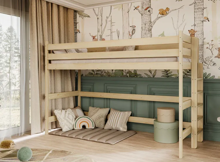 Drewniane sosnowe łóżko dziecięce na atresoli Tifi 3X - 5 rozmiarów