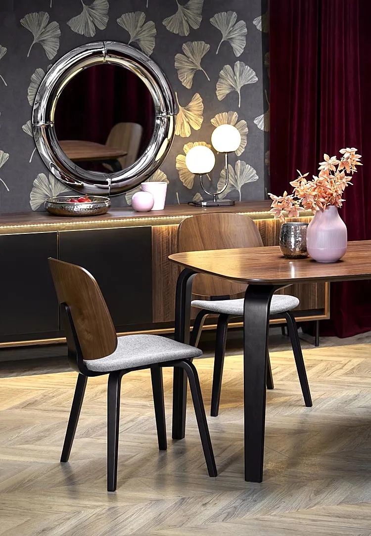• Trwałe fundamenty: Nogi z litego drewna kauczukowego zapewniają stabilność, a dzięki unowocześnioej formie, podreślonej elegancką czernią nadają krzesłu wyrazistego, nowoczesnego charakteru.