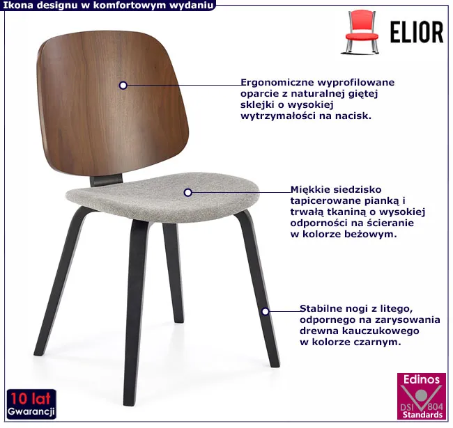 • Modny kolor: Orzechowy. Kliknij w link i sprawdź także inne krzesła retro w sklepie Edinos.pl. Stwórz swój praktyczny zestaw mebli.