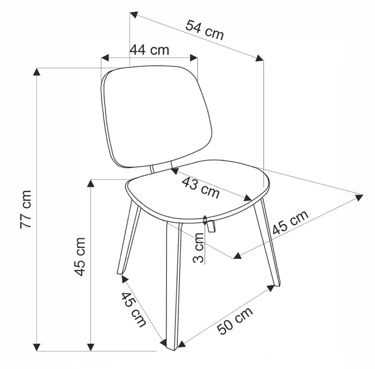 • Wymiary: szerokość: 54 cm, głębokość: 45 cm, wysokość: 81 cm, wysokość siedziska: 45 cm.