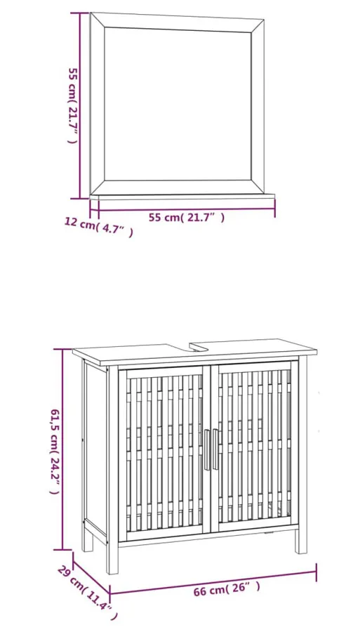 • Wymiary szafki podumywalkowej: szerokość: 66 cm, głębokość: 29 cm, wysokość: 61,5 cm