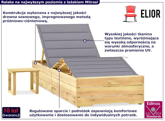 Dotyczy: Leżak z poduszką i stolikiem jasnozielony - Ogebis