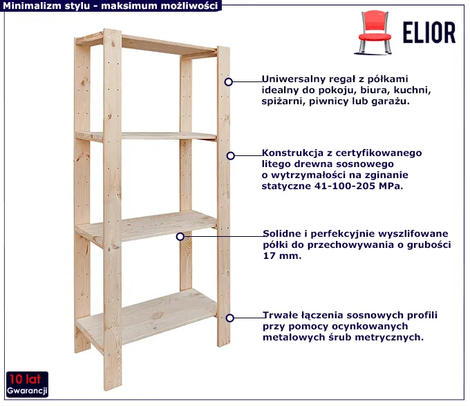 Sosnowy regał z półkami Santiago