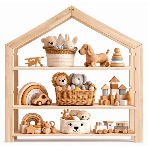 Drewniany regał dziecięcy na zabawki domek - Velado 3X
