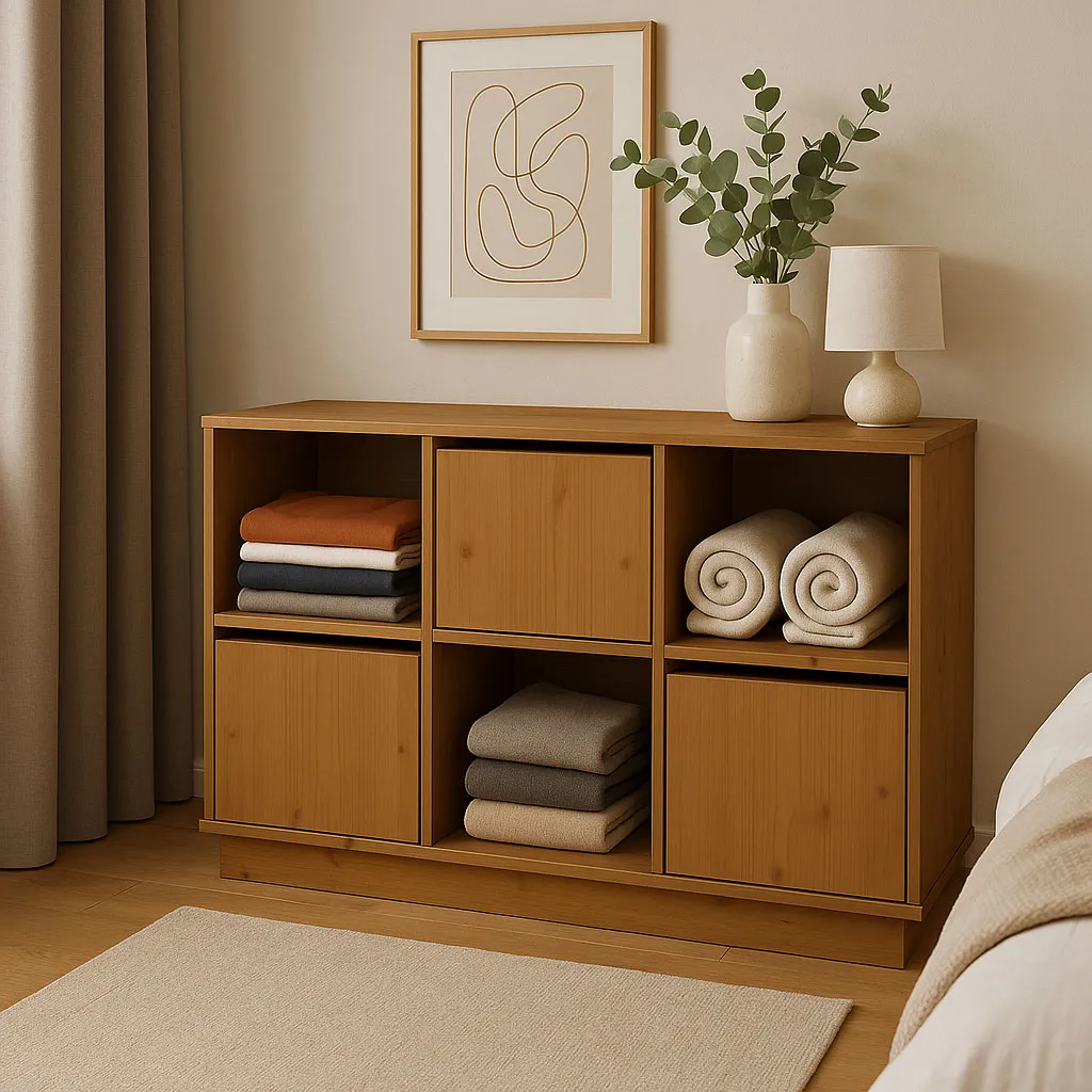 Regał Sorik 3X to praktyczny i estetyczny mebel zaprojektowany z myślą o wygodnym przechowywaniu ubrań. Jego prosta, ponadczasowa forma sprawia, że świetnie odnajdzie się w garderobie, sypialni czy przedpokoju, harmonijnie wpisując się zarówno w aranżacje klasyczne, jak i nowoczesne czy skandynawskie. Solidna konstrukcja z litego drewna sosnowego zapewnia trwałość i stabilność, a przemyślany układ otwartych i zamkniętych półek pozwala wygodnie uporządkować odzież i tekstylia. To funkcjonalny regał, który nie tylko ułatwia organizację przestrzeni, ale też dodaje wnętrzu ciepłego, naturalnego charakteru.