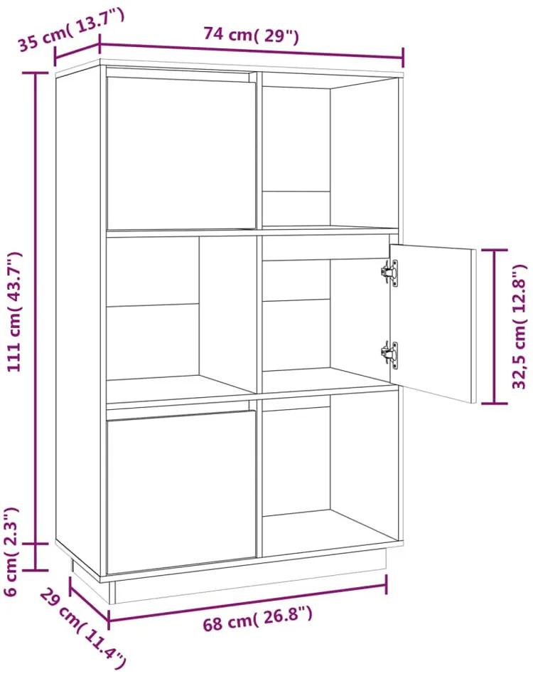 • Wymiary: wysokość mebla 117 cm, szerokość mebla 74 cm, głębokość mebla 35 cm.