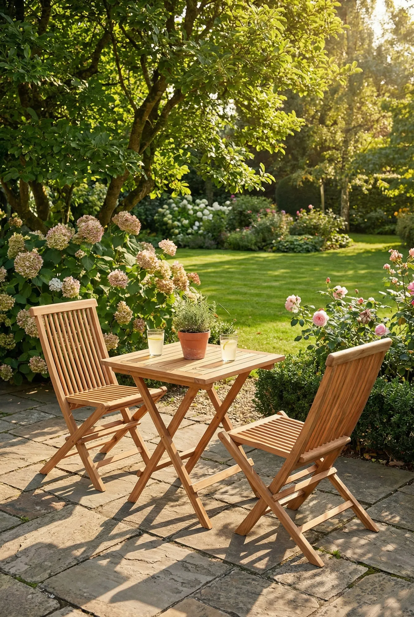 - Materiał: odporne na wpływ czynników atmosferycznych, lite drewno tekowe z wykończeniem na bazie wody.
