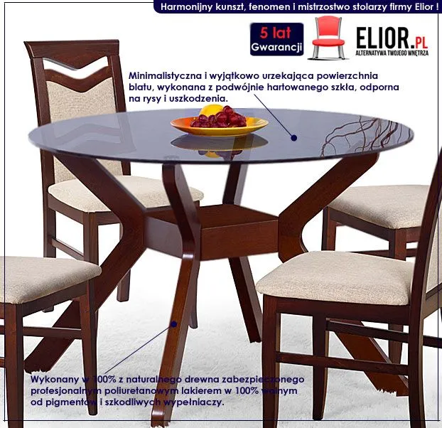 Stół to centralny mebel Twojego wnętrza. Mogą dziać się przy nim rzeczy piękne, czarodziejskie i fascynujące. Niestety Twój stół usłyszy kiedyś także inne reakcje emocjonalne jak chociażby gniew, przygnębienie czy rozdrażnienie. Zadbaj więc o to, aby ten najważniejszy mebel Twojego domu godnie znosił wszystkie panujące u Ciebie myśli, nastroje i emocje. Postaw na profesjonalny produkt znanego producenta, który jako jedyny na rynku oferuję Ci aż 5 lat gwarancji i niebywale ekscytujący design, wykonany w 100% z litego drewna. Zakochasz się w nim od pierwszego wejrzenia.