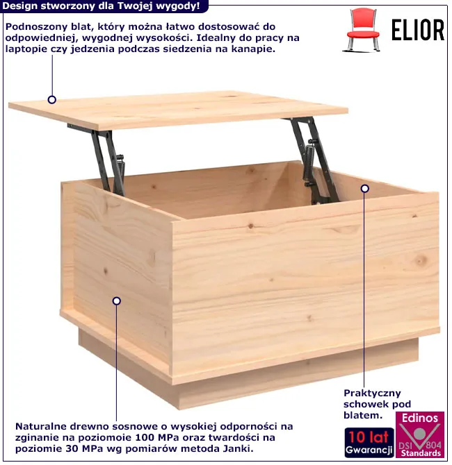 Dotyczy: Biały drewniany stolik kawowy z unoszonym blatem - Adversa 3X