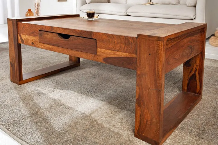 Stoliki kawowe są z nami od bardzo dawna i nie zapowiada się, żeby kiedykolwiek się nam znudziły. Jeśli cenisz sobie klasyczny styl oraz naturalne materiały to pokochasz stolik kawowy Dalido. Mebel ten został w całości wyprodukowany z naturalnego drewna sheesham, które polakierowano w celu podniesienia jakości oraz wytrzymałości całej konstrukcji. Proste kształty oraz niebanalny wygląd stolika świetnie sprawdzą się we wnętrzach urządzonych w stylu retro, vintage, skandynawskim, klasycznym oraz wszędzie tam, gdzie ceniona jest precyzja wykonana oraz naturalne materiały. Dalido posiada wysuwaną szufladę, która idealnie sprawdzi się, jako dodatkowe miejsce do przechowywania, będąc jednocześnie eleganckim elementem podkreślającym całość. Każdy stolik jest wykonywany ręcznie z naturalnego drewna, dlatego mogą na nim występować naturalne odchylenia w kolorze i strukturze, co sprawia, że każdy egzemplarz jest wyjątkowy oraz niepowtarzalny. Dopełnij swój salon praktycznym połączeniem eleganckiego stylu z wysoką funkcjonalnością oraz najlepszą jakością.