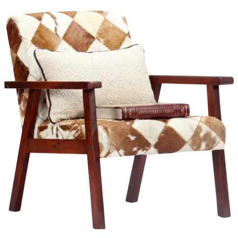 Drewniany wypoczynkowy fotel skórzany lisek Medison