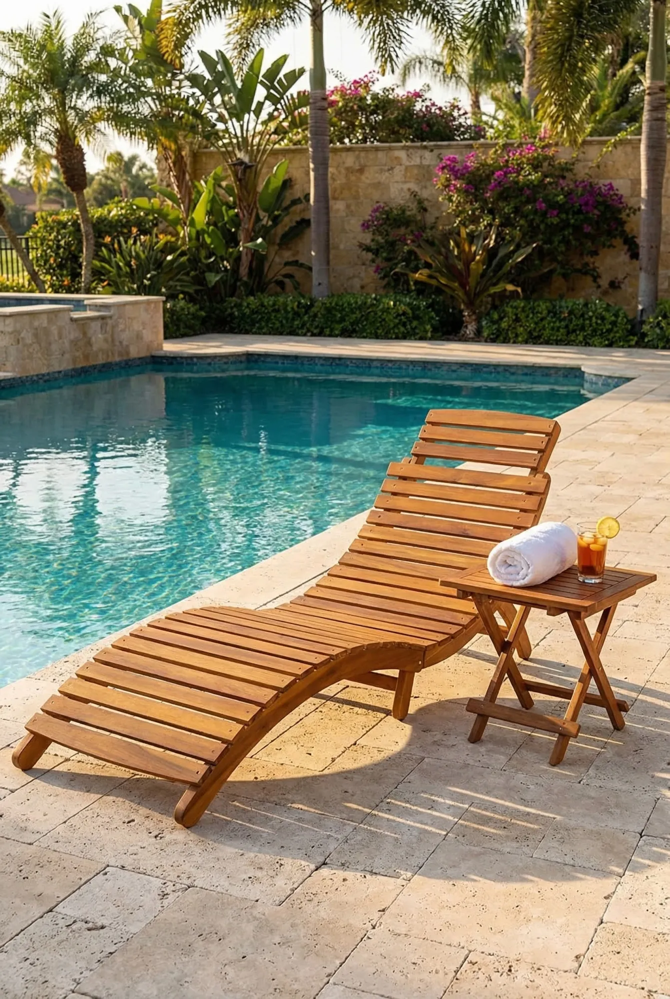 • Zestaw składa się z eleganckiego leżaka i stolika kawowego.
