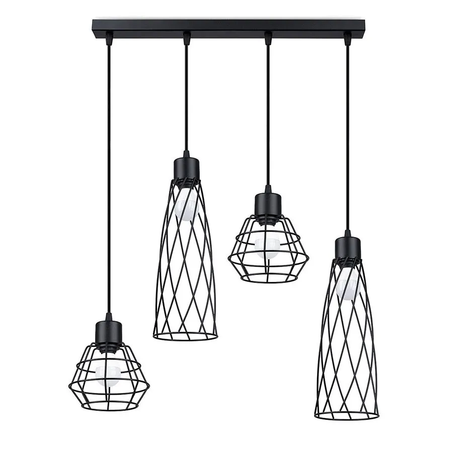 Czarna lampa wisząca z 4 drucianymi kloszami A422-Bogoti
