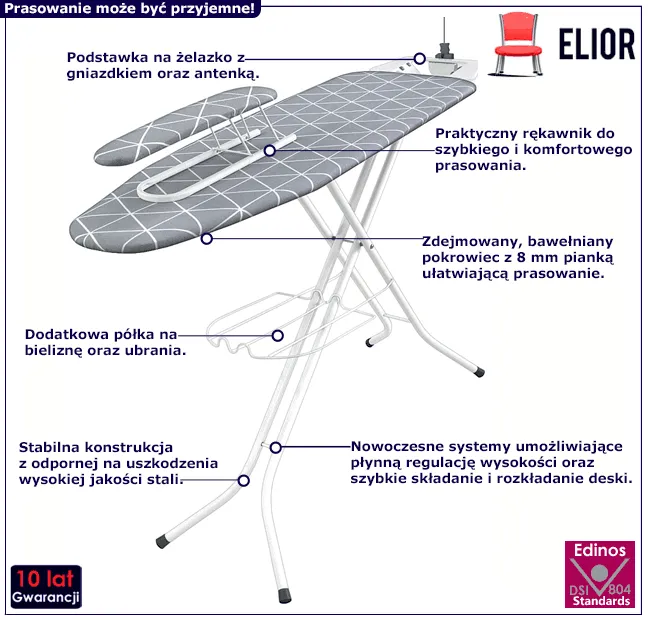 Czy kiedykolwiek marzyłaś o desce do prasowania, która wykona za Ciebie większość pracy? Jeśli tak, to nasz produkt jest dokładnie tym, czego potrzebujesz! Deska Bramex 3X marki Edinos Premium posiada wiele funkcji, które sprawią, że prasowanie będzie dla Ciebie o wiele przyjemniejsze i szybsze niż dotychczas!