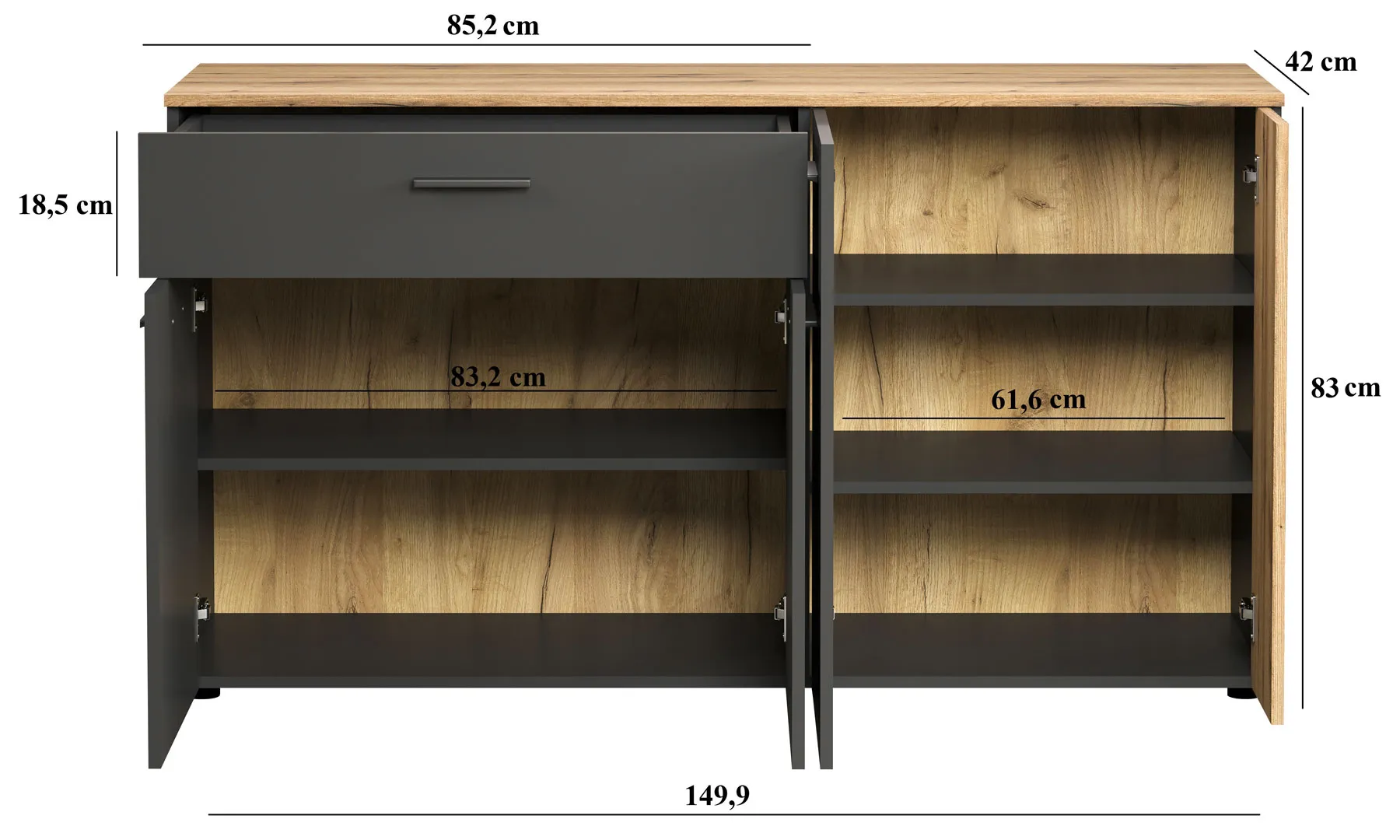 Duża komoda czterodrzwiowa grafit + dąb evok - Assoni 4X