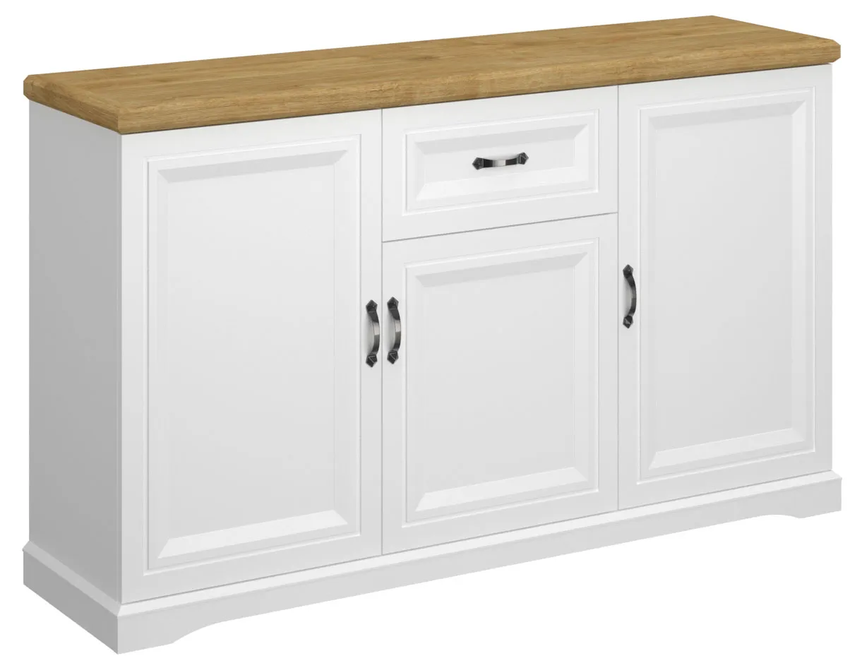 Komoda Epium 4X marki Edinos Premium to propozycja dla tych, którzy potrzebują więcej miejsca na przechowywanie bez rezygnowania z wyrafinowanego wyglądu. Jej szeroki blat z dekoru dębu harbor nadaje bryle lekkości i naturalnego uroku, a trzydrzwiowy układ z centralnie umieszczoną szufladą gwarantuje wygodne uporządkowanie codziennych przedmiotów. To mebel, który świetnie sprawdzi się w salonie, jadalni, a nawet w przestronnym holu — wszędzie tam, gdzie funkcjonalność powinna iść w parze z pięknem.
