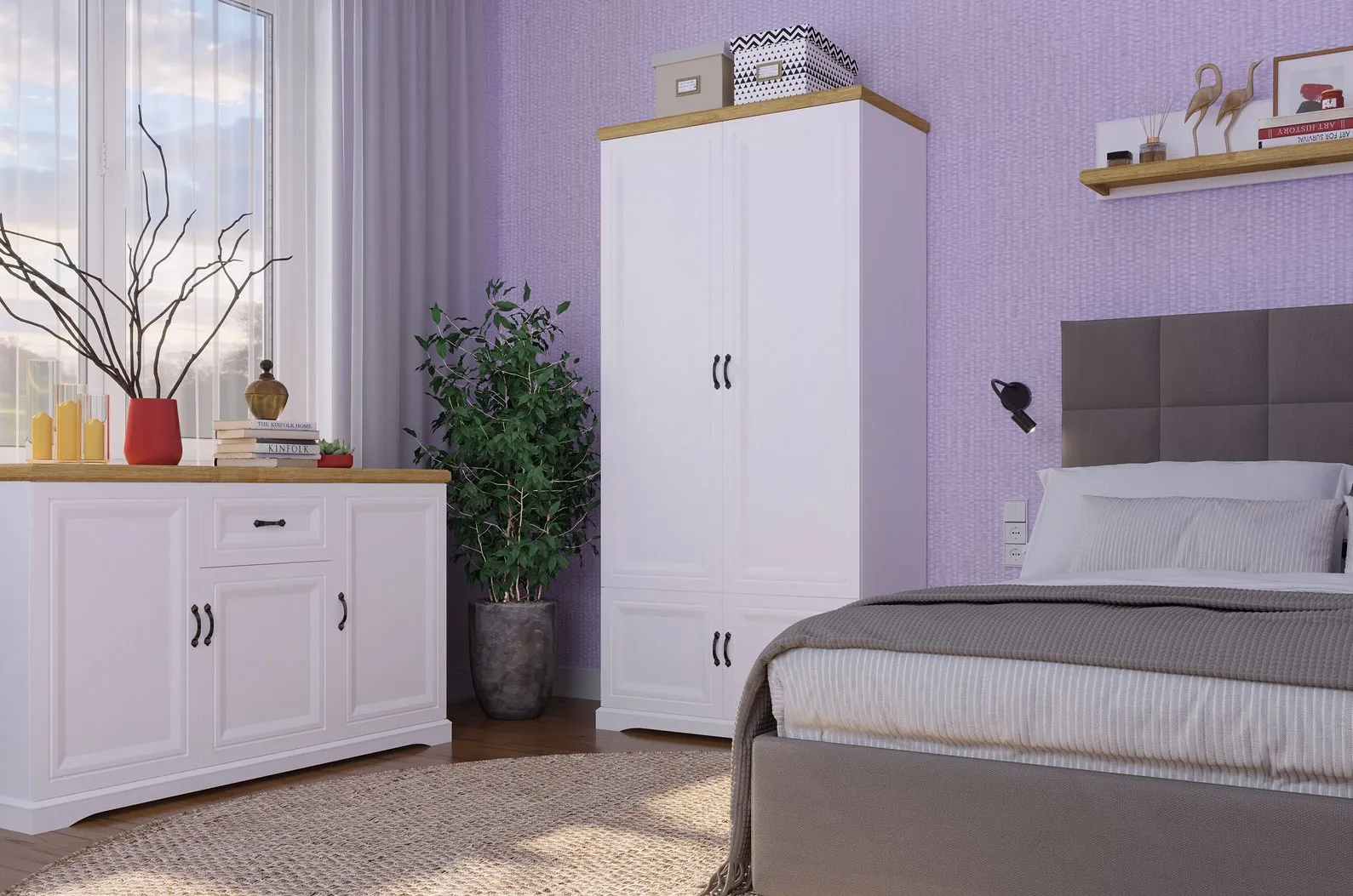 Przykładowa aranżacja z wykorzystaniem komoody Epium 4X biały + dąb harbor
