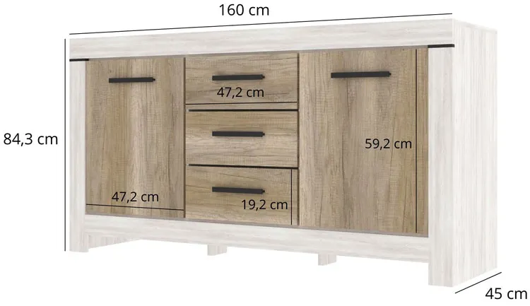 Komoda z 2 szafkami i 3 szufadami Tillen 3X sosna canyon + dąb carabela