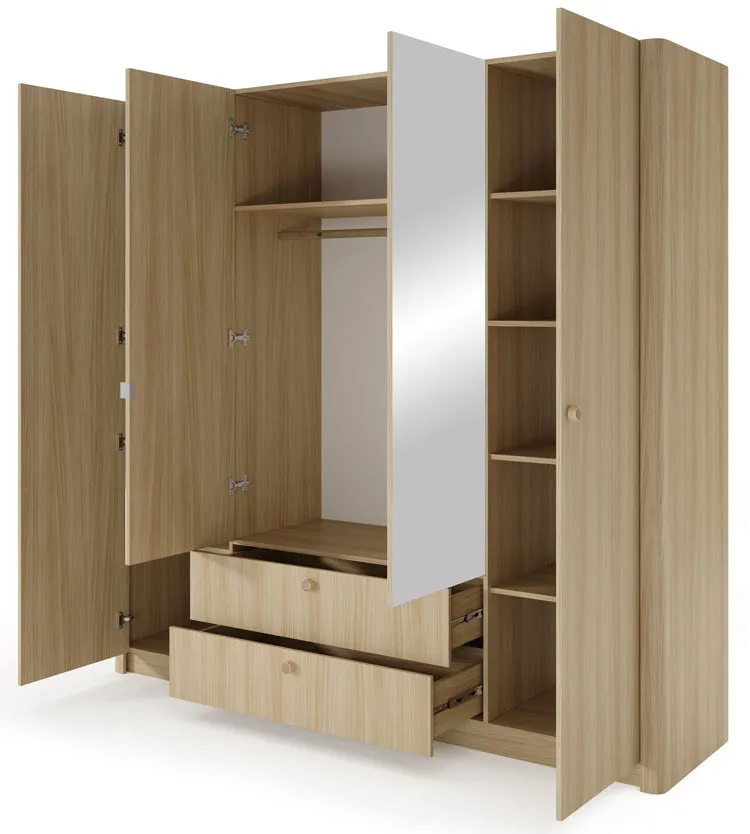 Przykładowe wykorzystanie szafy czterodrzwuowej Lizzy 3X dąb barista